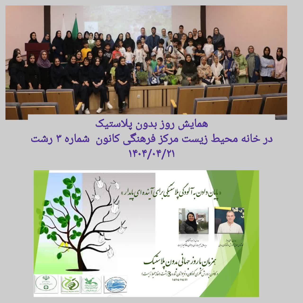 شمال ما: همزمان با روز جهانی بدون پلاستیک، به همت مرکز فرهنگی هنری شماره ۳ کانون پرورش فکری کودکان و نوجوانان شهر رشت ( خانه محیط زیست )،اداره کل حفاظت محیط زیست گیلان«ویژهبرنامه زمینما، دل ما» و همراهی انجمن مردمنهاد جمعیت زنان و جوانان حافظ محیطزیست، مدرسه سما و مدارس صنایع شیمایی برگزار شد.