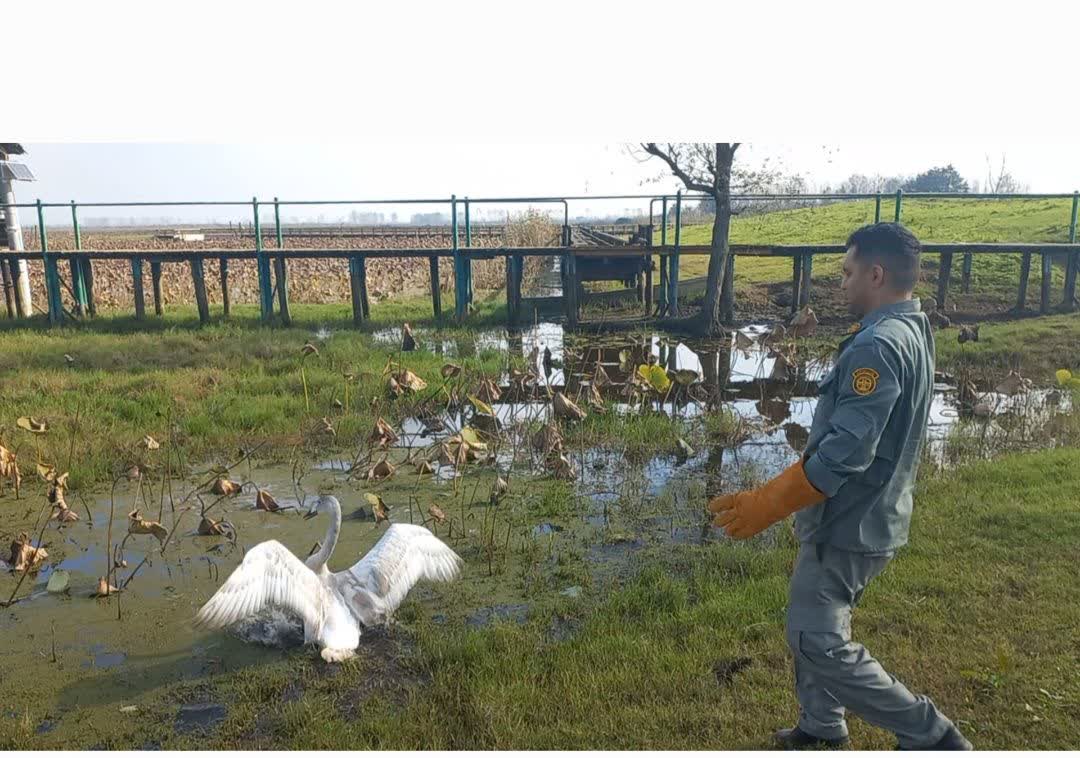 وی افزود: «مأموران یگان پس از حضور در محل، قو را تحویل گرفتند و بررسیهای اولیه از جمله ارزیابی سلامت عمومی، کنترل جراحات احتمالی و وضعیت توان پرواز را انجام دادند که خوشبختانه سلامت پرنده تأیید شد.»